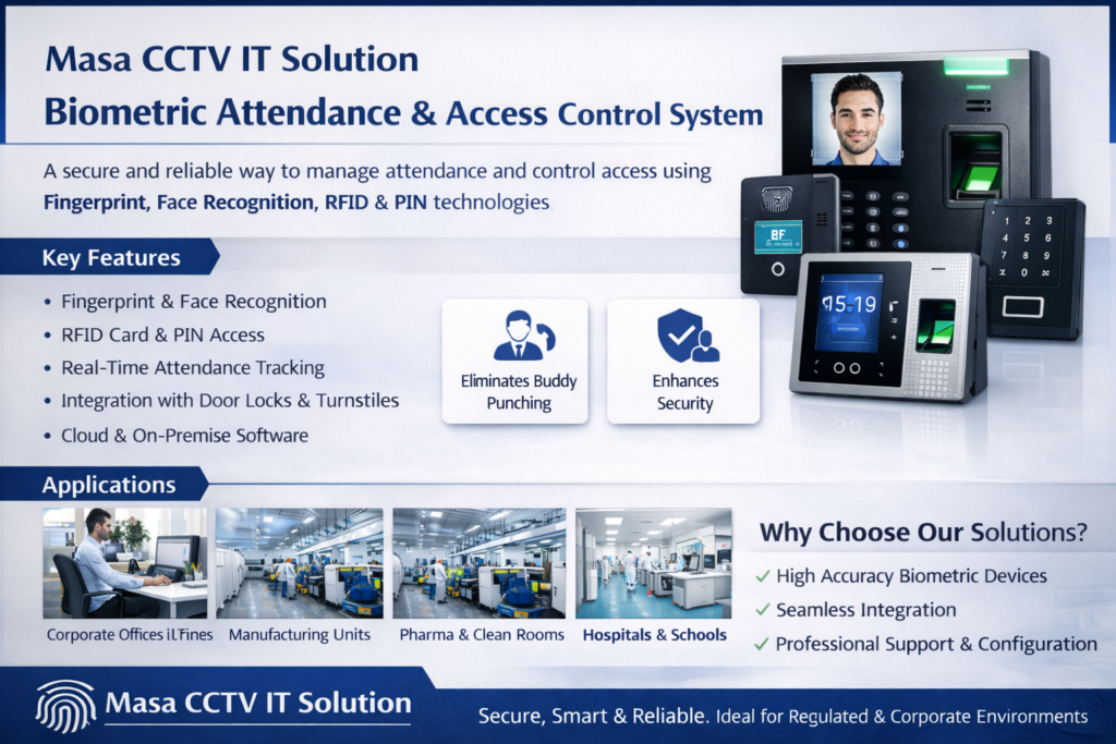 Masa CCTV IT Solutions is at the forefront of integrating advanced Biometric Attendance and Access Control Systems in Baddi, Distt. Solan (H.P.) , offering state-of-the-art solutions for enhanced security and efficient workforce management. This comprehensive guide illuminates the significance of our biometric systems, demonstrating why we are the preferred choice for businesses and organizations seeking top-tier security and attendance solutions.